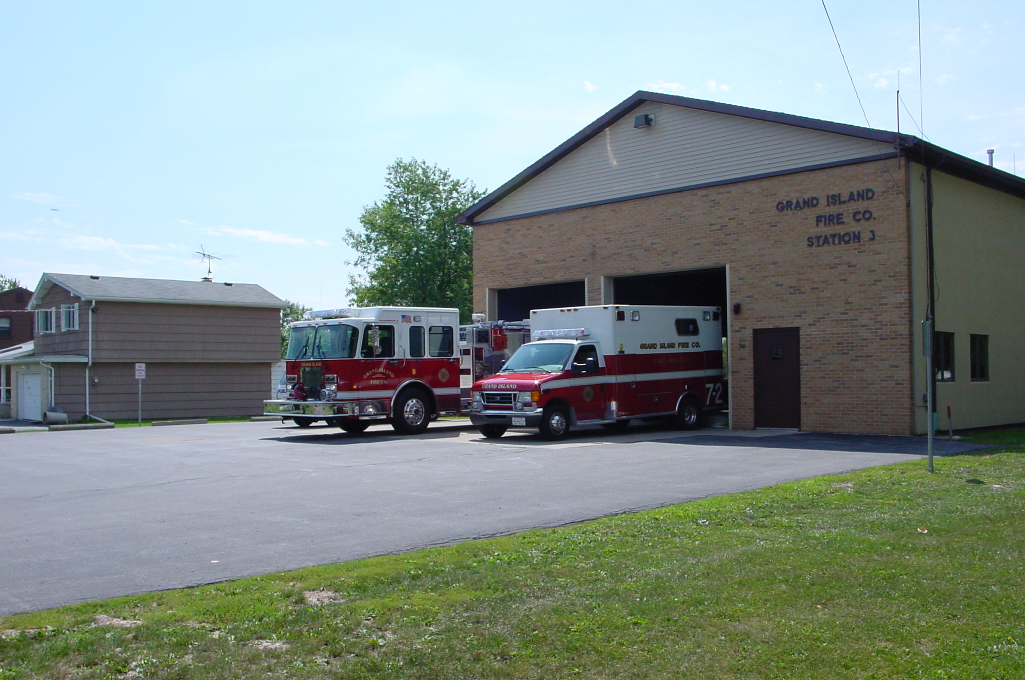 - The Grand Island Fire Company maintains three fire stations within the Town of Grand Island, New York. Because of the square mileage of the fire protection district, plans call for more fire stations as the population increases. Currently, the fire company holds title to vacant land on Whitehaven Road near River Oaks and on Staley Road near the WHLD radio towers in anticipation of the required expansion.