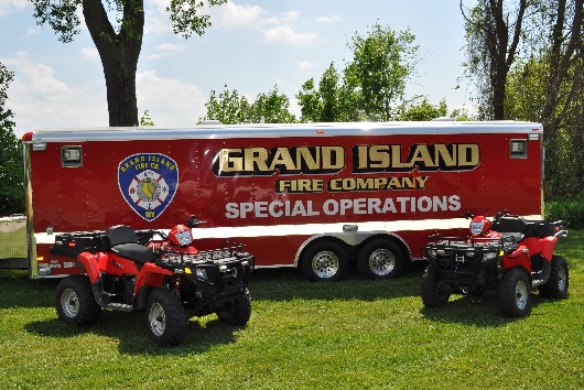 - Like any municipal service, fire departments need a fleet of vehicles to deliver prompt, safe and efficient service. Sometimes, specialized vehicles are required for specialized services. Sometimes, stock vehicles will suffice. The Grand Island Fire Company operates a fleet of 15 vehicles to meet the needs of the Town of Grand Island..